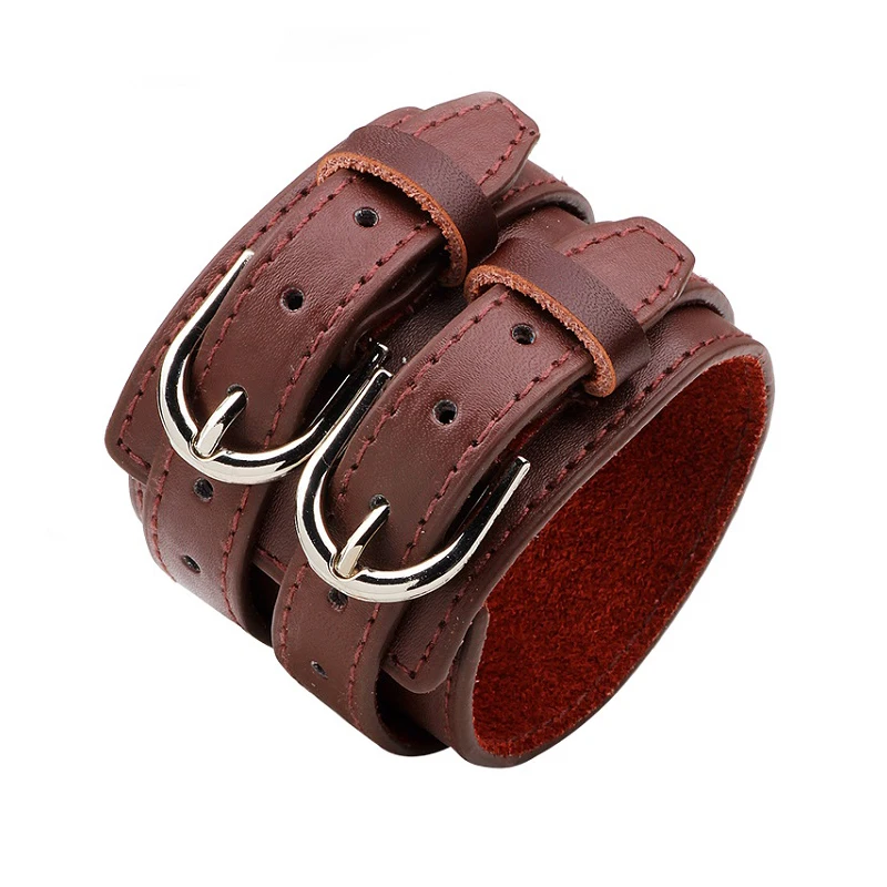 Buy 2019 New Black Brown Vintage Genuine Leather Bangles Wide Leather Bracelet For Women Men Bracelet E