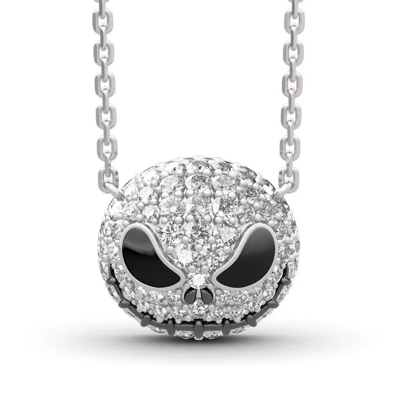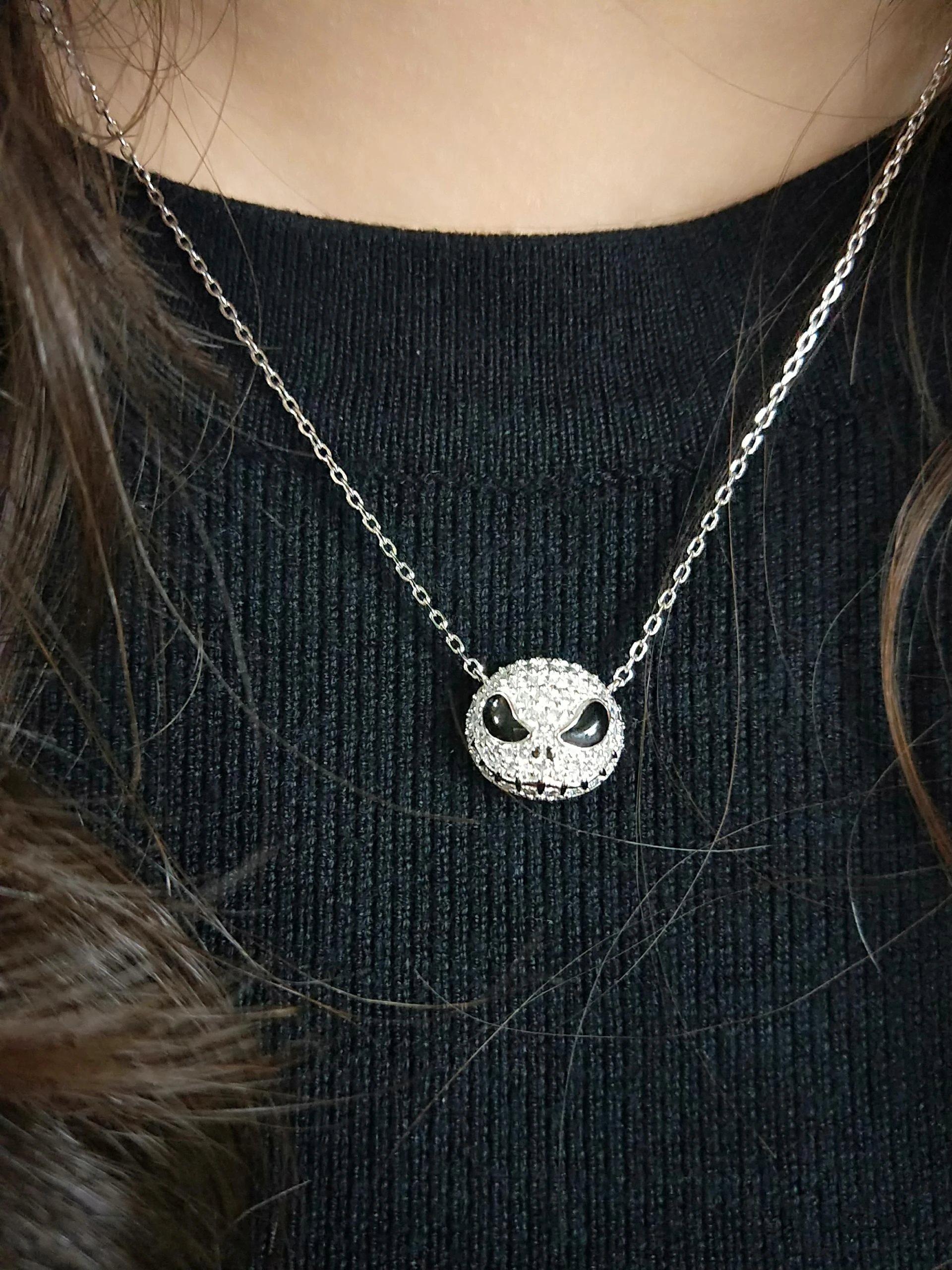 Best Hanreshe Nightmare before Christmas Skull Necklace Pendant Silver Chain Punk Crystal Jewelry Pumpki