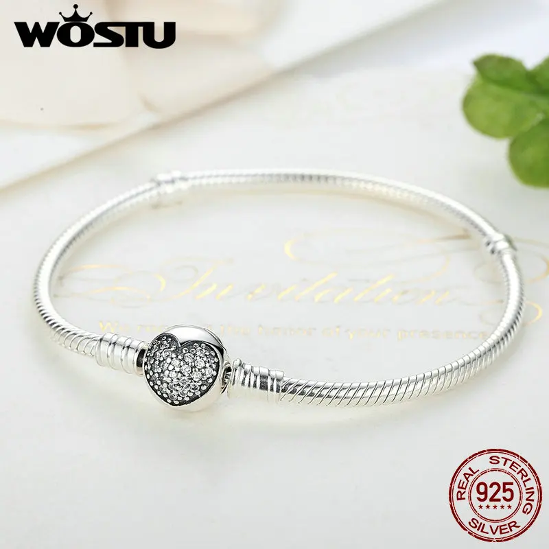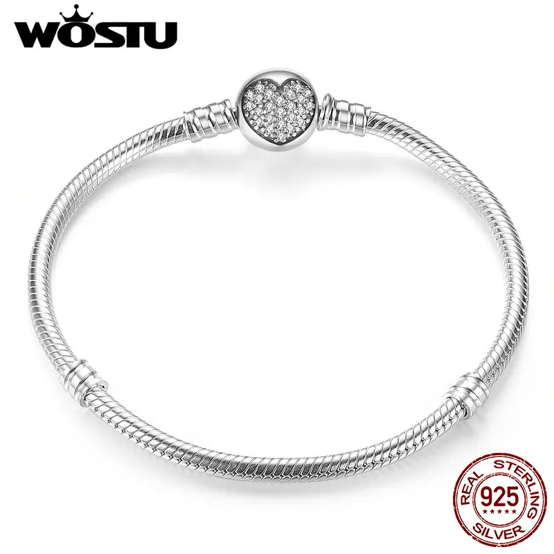 Buy Luxury 100% 925 Sterling Silver Sparkling Heart Snake Chain Fit Original Charm Bracelet & Bangle Fo