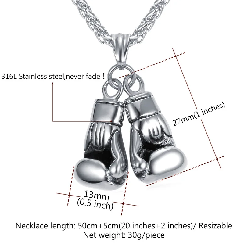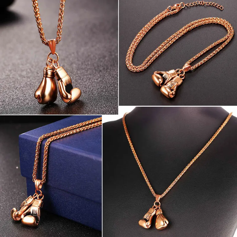 New U7 Men Necklace Gold Color Stainless Steel Hip Hop Chain Pair Boxing Glove Pendant Charm Fashion Sp