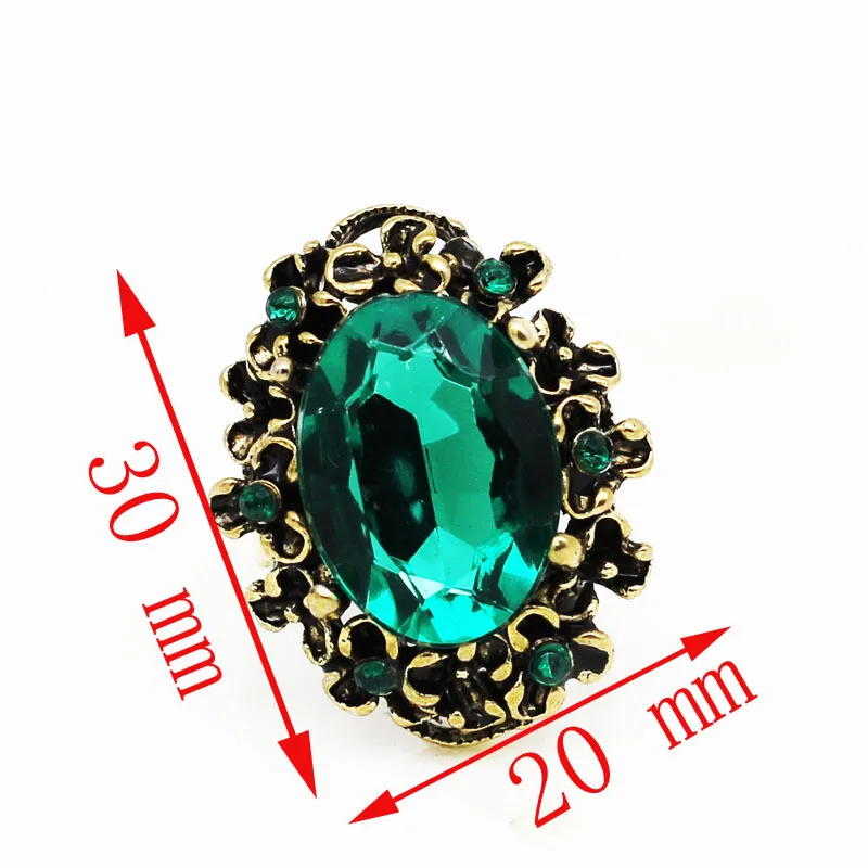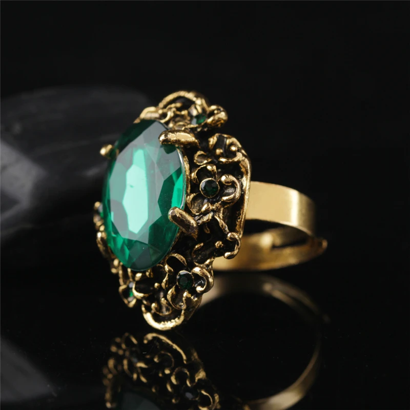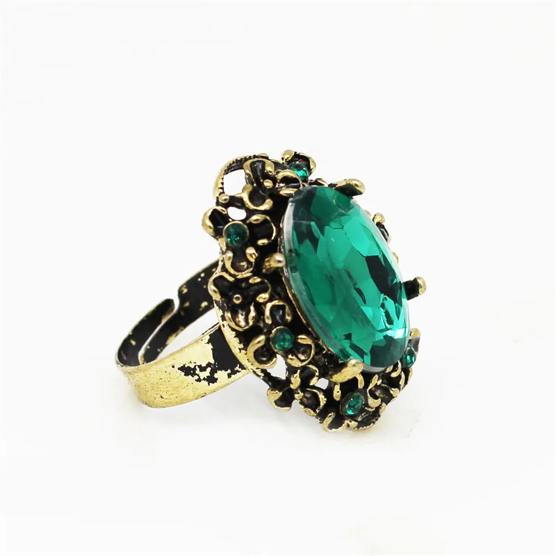 Buy Antique Bronze Vintage Gold Color Green Crystal Stone Rhinestones Adjustable Ring Finger Jewelry Wo