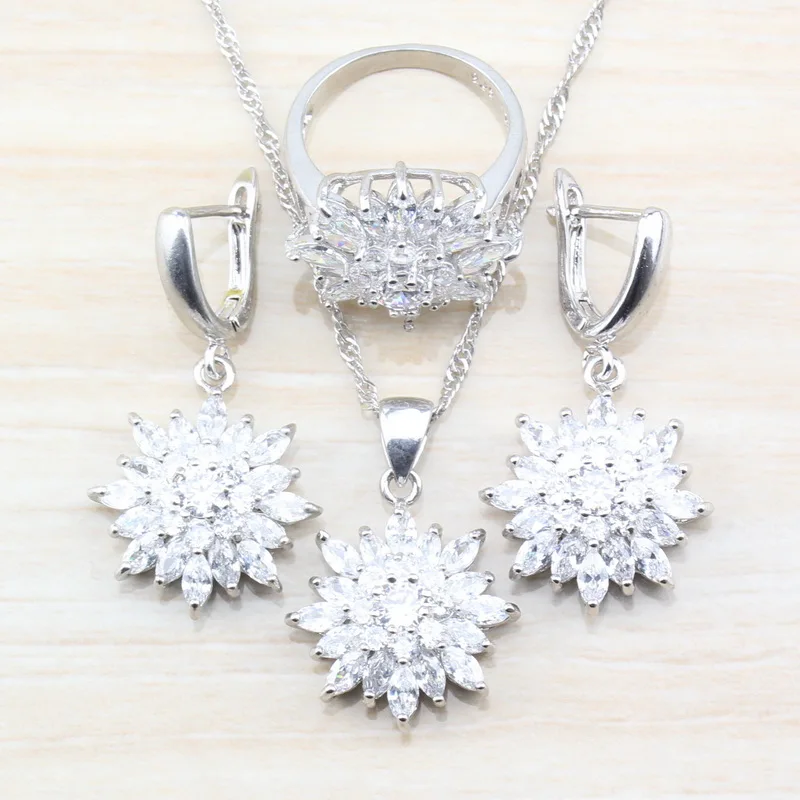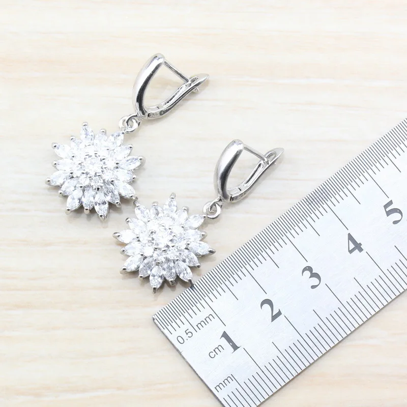 Best New Trendy Wedding Accessories White With Natural Crystl Dangle Earrings And Necklace/Ring 925 Silv