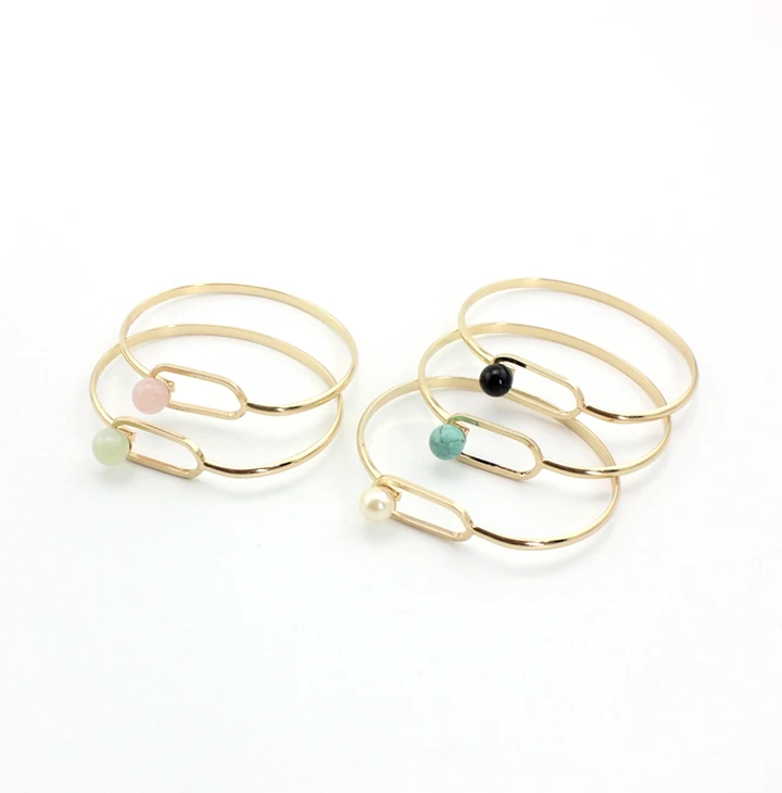 New 2016 New Multicolor Natural stone beads copper bangle personality oval cuff bracelets & bangles for