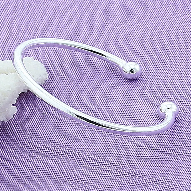 New Charm Sterling Silver Cufflinks 4mm Bracelet Bangles Women Fashion 925 Silver Color High Quality Br