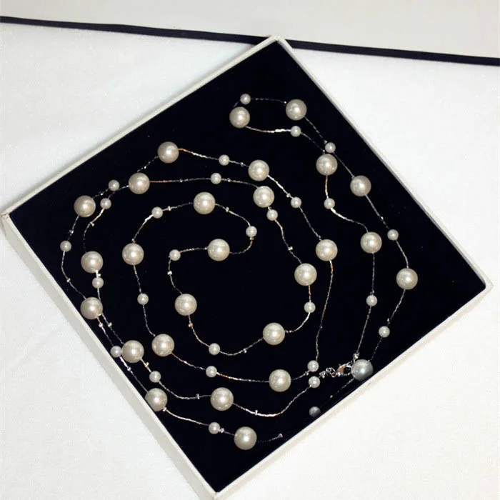 New Double Layers Simulated Pearl Jewelry Long Necklace Women Classic Beads Chain Necklaces & Pendants