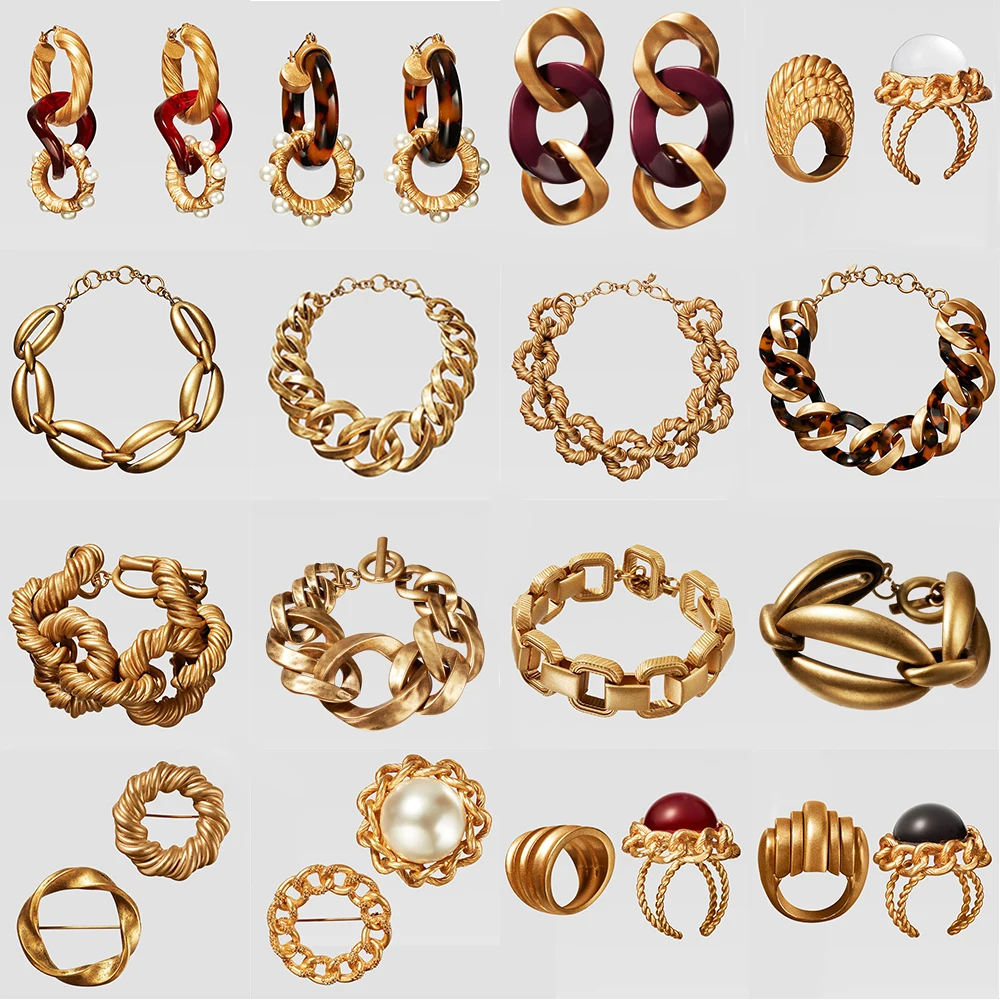 New Fashion ZA New Jewelry Sets for Women Earrings Necklaces Bracelets Brooches Crystal Pearl Jewelry B
