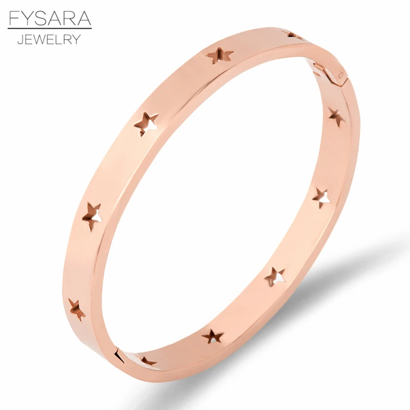 Promo FYSARA Fashion Hollow Star Bangles & Bracelets For Women Trendy Jewelry Stainless Steel Rose Gold S