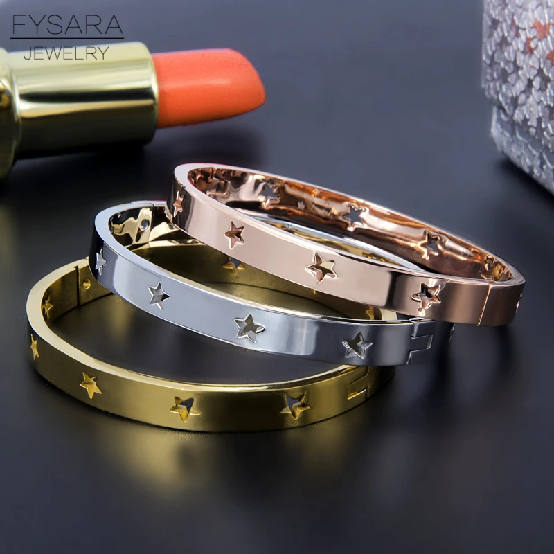 New FYSARA Fashion Hollow Star Bangles & Bracelets For Women Trendy Jewelry Stainless Steel Rose Gold S