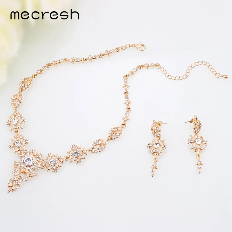 Buy Mecresh Rhinestone Flower Bridal Jewelry Sets for Women Silver Color Crystal Party Wedding Necklace