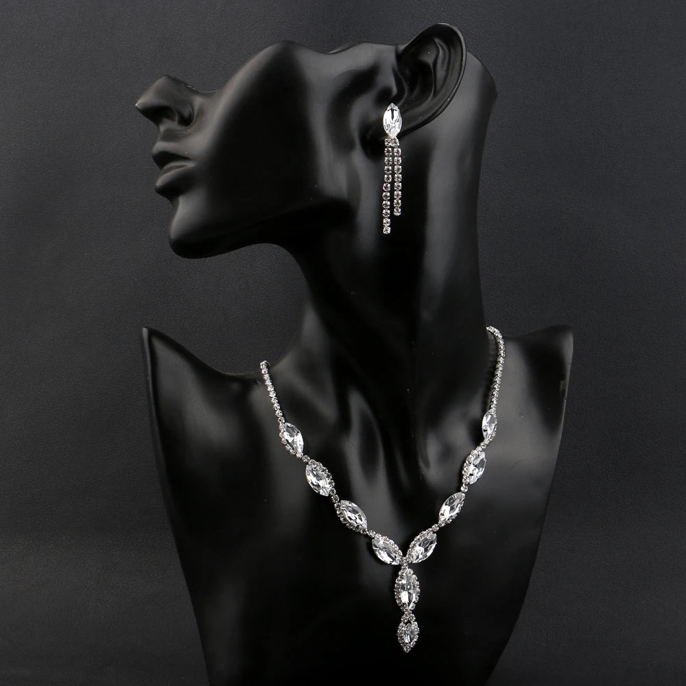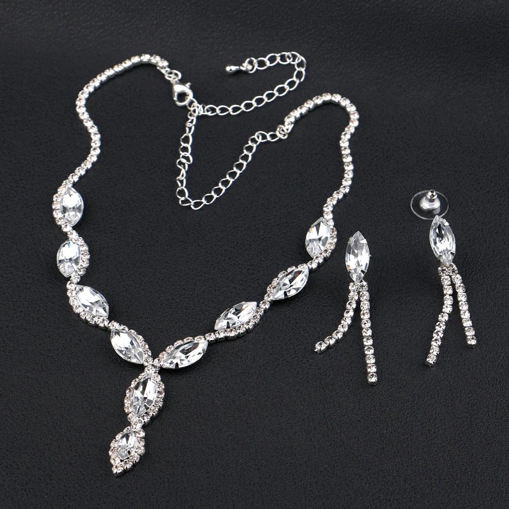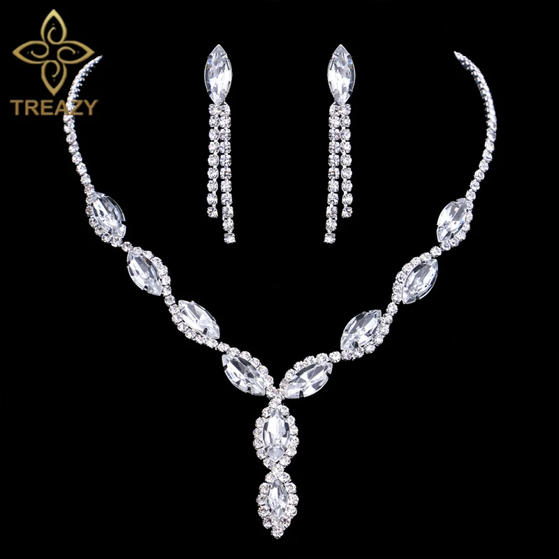 Buy TREAZY Silver Color Leaf Tassel Wedding Jewelry Sets for Women Rhinestone Crystal Long Necklace Ear