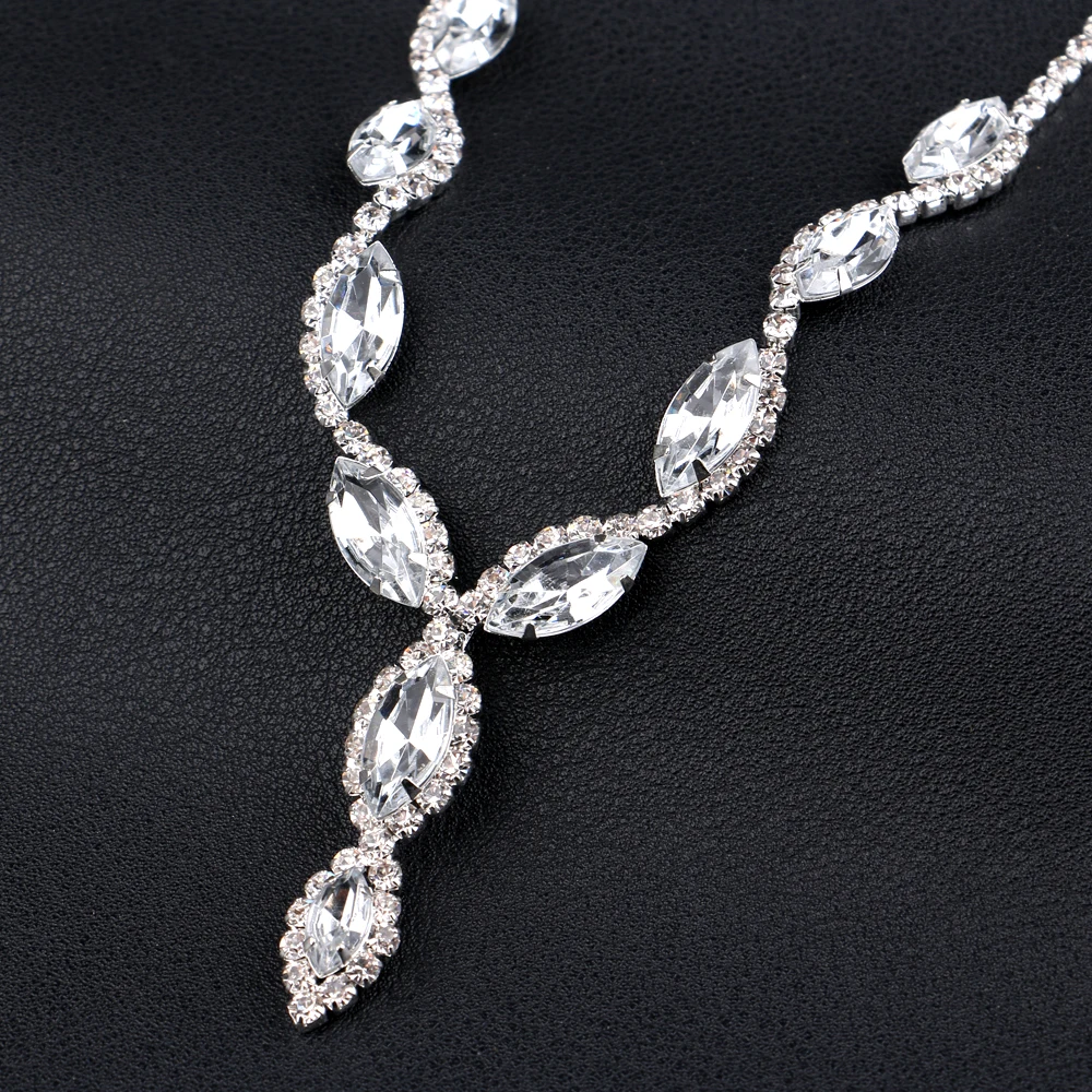 New TREAZY Silver Color Leaf Tassel Wedding Jewelry Sets for Women Rhinestone Crystal Long Necklace Ear