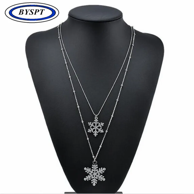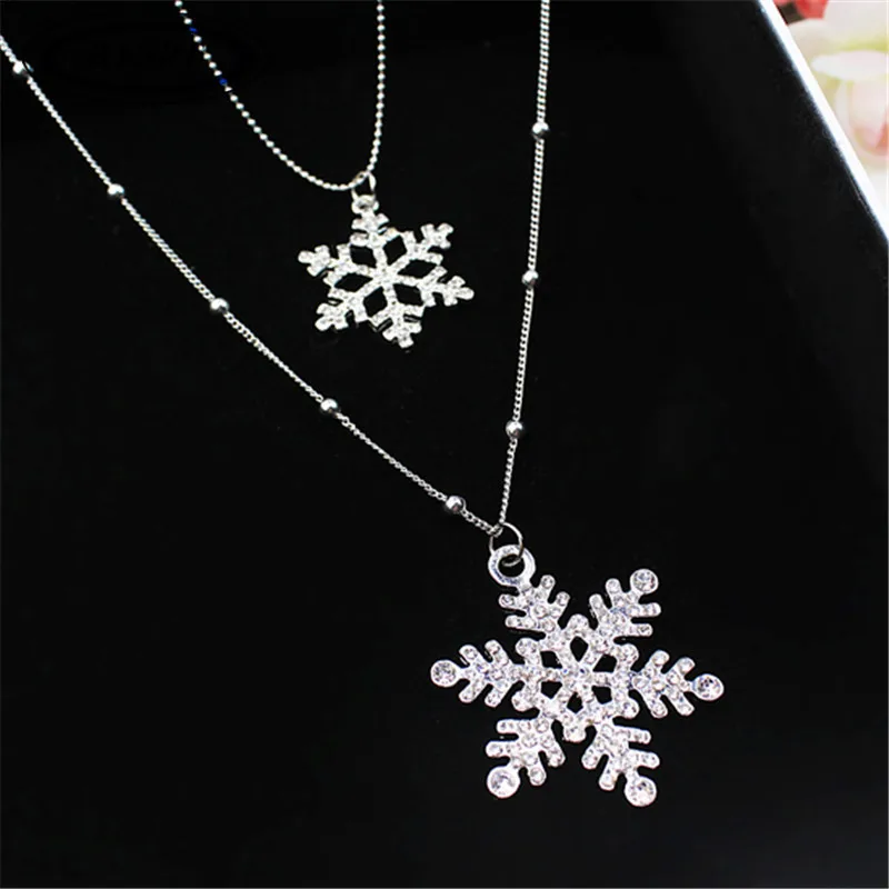 Promo Women Christmas Gift Beautiful Silver Color Crystal Snowflake Necklaces Pendants Snow Flower Neckla